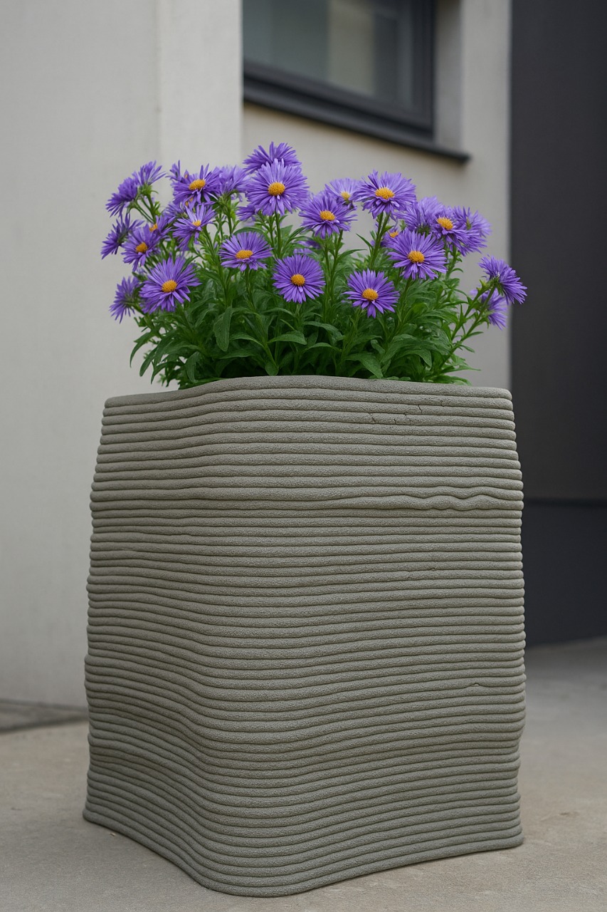3D-изделие слоистой фактуры, имеющее форму с плавно изогнутыми гранями. Дизайн сочетает современные цифровые технологии с функциональностью городского элемента благоустройства.