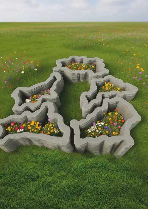 3D-изделие слоистой фактуры имеет очертание карты Беларуси, полученное путём составления пяти элементов, отдельно напечатанных на 3D-принтере бетоном.