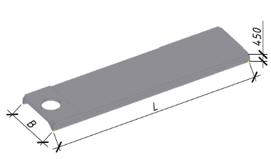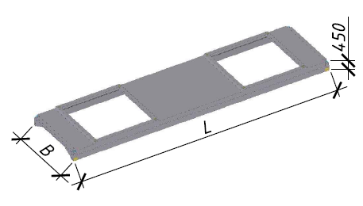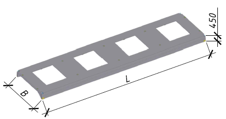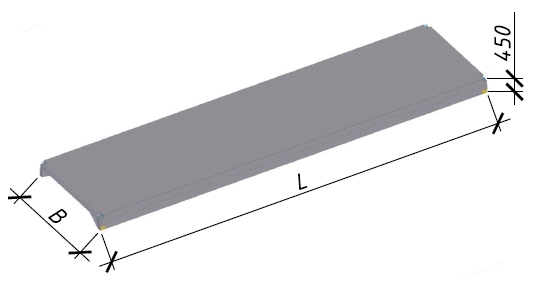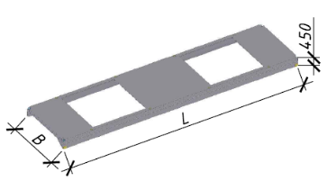 Предусмотрены ребристые плиты покрытия шириной 2980 мм, длиной 11960 мм, высотой Плиты без дополнительных мероприятий по антикоррозионной защите могут применяться в условиях, соответствующих классу экспозиции ХС3 согласно СП 5.03.01-2020 «Бетонные и железобетонные конструкции». При применении плит в условиях эксплуатации, соответствующих иным классам экспозиции, следует предусматривать мероприятия по антикоррозионной защите в соответствии требованиями СН 2.01.07-2020 «Защита строительных конструкций от коррозии». Для пропуска вентиляционного оборудования в полке ребристой плиты предусмотрены отверстия диаметром 400, 700, 1000 и 1450 мм.